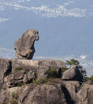 猴子观海是黄山风景区北海景区狮子峰附近一座平顶山上的奇石景 观,又称猴子望太平,高3米,宽1.5米左右。[2][3] 黄山有独特的花岗岩地貌。猴子观海所在处曾经是一处平地,后来,该处的花岗岩经风化、地壳抬升、雨水冲刷,较硬的部分岩石显露,形成了一个两只胳膊抱着腿,并且一动不动蹲在山头,望着云海的猴子形象。[4][2] 形成原因