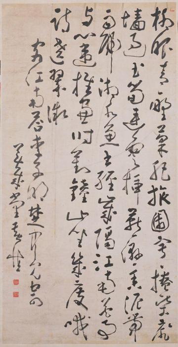 此轴录自作七言诗一首,末识:“客江南答李子明楚中见寄。”末署款:“美成堂黄慎。”下