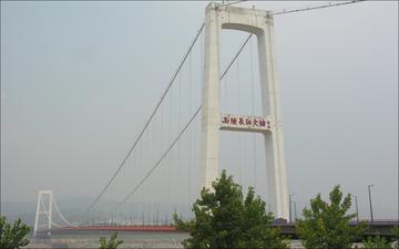 西陵长江大桥,位于中国湖北省宜昌市夷陵区境内,[1]距离三峡大坝4.5千米,是长江上第一座大跨度钢箱梁悬索桥。大桥两边的主缆像一根长秋千,分别吊着140根吊索,被誉为“神州第一跨”。[2]该桥于1993年12月动工兴建,[3]1996年8月10日竣工通车。[4]作为三峡坝区左右岸交通的主要通道,西陵长江大桥平均每年过境通行车辆300余万辆。[2] 西陵长江大桥为主跨900米的单跨双铰[jiǎo]全焊钢箱加劲梁悬索桥,全桥长1118.66米。[3]三峡工程建设期间,该桥作为左右岸交通的主要通道,承担了两岸繁重的运输任务。自通车以来,西陵长江大桥已连续安全高效运行26年,全桥吊索于2022年已达设计使用年限。[5]2022年4月起,该桥全桥启动吊索更换项目,本次更换的吊索最大长度约174米,重约1.4吨,顶部吊点距离桥面高达85米。[4]12月25日,三峡工程西陵长江大桥全桥280根吊索全部更换完成,这是长江上大跨度悬索桥全桥吊索更换的首次尝试。[2][4] 该桥是连系三峡工程长江两岸的交通纽带,于1997年获铁道部优质工程一等奖,1998年获中国建筑工程鲁班奖。前期该桥服务于大坝施工,是主要通行特种施工车辆的二车道专用公路桥,后期(即大坝建成后)为四车道汽车的永久性过江桥梁。[3] 建设历程