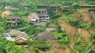 流水将村隔成田野阡陌中的一座小岛,高大的老树和穿插其间的藤蔓又构成一道10米左右厚度的绿墙,看不出一点象征村落的标志,逝去的岁月给它抹上了一层神秘的色彩。