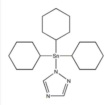 C20H35N3Sn。原药外观为无色结晶或粉末。不溶于水,其他