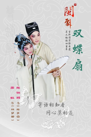 《双蝶扇》,是由福建省文化和旅游厅出品、福建省实验闽剧院创作演出,徐春兰执导,王羚编剧,周虹、陈洪翔等主演的闽剧折子戏。[1][2][3] 《双蝶扇》讲述少女林梦卿和书生陈子霖自幼两情相倾,孰料二人婚期临近时,陈子霖因为身涉命案,而被官府羁押入狱。突如其来的变故,使林梦卿的父母不得不对女儿的婚姻做新的选择,于是就瞒下了事实真相,把女儿改嫁与当地乡绅吴玉山。林梦卿、陈子霖、吴玉山三个人的命运,因此纠结在了一起,让他们面对各自最痛苦、最不堪的人生境遇,进行着道德考验、情感抉择。[1][4]