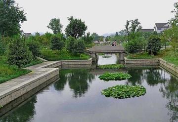 福田湿地公园位于商贸园区景观轴线的最北端,在南北方向形成湿地 公园—市民广场—东阳江—青岩山空间景观轴线。