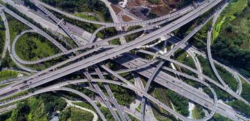 黄桷[jué]湾立交(外文名:Huangjuewan overpass)[6],又称盘龙立交桥[1],位于重庆市南岸区弹子石片区[5],占地面积达616亩[2]。由三横线、内环快速及机场专用快速3条城市快速路相交而成[7]。是重庆主城最大、最复杂、功能最强大的“枢纽型”立交。[1]其主设计师是中鼎世纪工程设计负责人张洪勇。[3] 黄桷湾立交于2009年9月30日正式开工建设[5],2017年5月30日主体完工。[8]截至2017年6月,黄桷湾立交匝道总长16414米,其中高架桥长6770米,道路及接顺段长9644米。[5]截至2020年,黄桷湾立交连接广阳岛、重庆江北机场、南岸、大佛寺大桥、朝天门大桥、弹子石、四公里、茶园8个方向,共有20条匝道。[2]该立交从上到下共5层,第一层连接朝天门大桥与慈母山隧道的“三横线”快速干道,第二层是机场专用高速匝道,第三、四层分布着各条匝道,最底层是弹子石至广阳岛道路。[1]其主线设计为双向四车道,主线车行速度为60公里/小时,匝道行车速度为40公里/小时。[5] 历史沿革