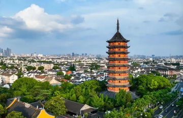 南朝梁时(公元502年—公元557年),报恩寺塔建有11层塔,北宋元丰年间重建为9层。南宋报恩寺塔再次毁于战火,于绍兴二十三年(公元1153年)改建成九级八面宝塔。[5]报恩寺塔与寺院屡经修缮保护,1957年被列为江苏省文物保护单位,1965—1967年全面维修。1993年随着北塔公园产权归还苏州佛教协会。[6]2003年6月,报恩寺塔所 在的北塔公园恢复宗教场所开放,由北塔公园管理处与报恩寺共同管理。2006年,报恩寺塔作为宋至清时期古建筑,被国务院列入第六批全国重点文物保护单位名单。[6]