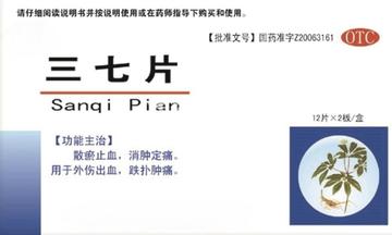 三七片,化瘀止血剂,由中药材三七制成,具有散瘀止血,消肿止痛的功效。
