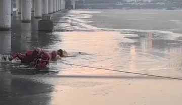 ,当时气温只有零下十几度。消防员接警后到达现场,用匍匐的方式救人,此时冰面突然裂开。所幸,两位消防员合力将女孩救起,没有人员受伤。