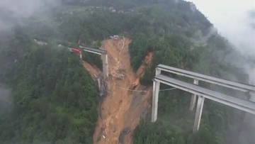 2025年6月24日7时40分许,猴子河特大桥因持续强降雨诱发山体滑坡,导致引桥发生垮塌。
