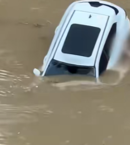 ,疑似驾驶操作失误冲入东莞石马河内。