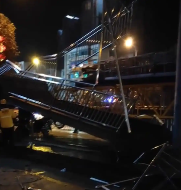 2026年1月13日晚11时20分左右,贵阳市乌当区一辆载有塔吊装置的半挂货车在经过新添大道北段117地质队人行天桥时,因车辆高度超过限高而撞击天桥,导致天桥受损严重,有一侧的梯道发生垮塌。现场视频显示,桥体砸落在路面,涉事货车停 在桥下,路面散落有许多钢管。事故未造成人员伤亡。[1][2][3] 事件处置
