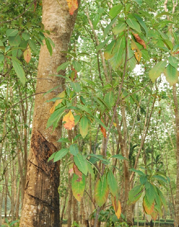 金鸡纳树,又名列氏规那树、奎宁树等,属常绿灌木或小乔木,原产地源自南美安第斯山脉,在南亚、东南亚和中国云南等地有栽培。[5] 金鸡纳树树高2.5~6米,少数可达20米,树皮约2~5毫米厚,黄绿色或褐色。叶对生,矩圆状披针形,长7~15厘米,下表面叶脉凸起。金鸡纳树花期是6~9月,果期可达次年2月。金鸡纳树适宜生长在热带海拔800~3000米的山地,以年平均温度16~24℃,年降水量2000~2500毫米为宜,要求全年无霜、温差小,以富含腐殖质、pH为4.5~6的酸性壤土为佳,喜荫蔽,高荫蔽度可显著提高树皮中的奎宁含量。[5] 金鸡纳树自古以来就被印第安人用作退烧药。19世纪初,法国的药剂师成功从金鸡纳树中提取出有效成分奎宁,于是才有了稳定的治疗效果。从19世纪中期开始,金鸡纳树开始在现在的印度尼西亚爪哇岛中部栽种。[6] 形态特征