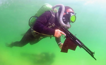 蛙人(frogmen),[1]是指担负水下侦察、爆破和执行特殊作战任务的部队,因他们的装备中有形似青蛙脚形状的脚蹼,所以称之为“蛙人”。[6][7] 蛙人部队从古希腊时期就开始用于军事目的。[3]第一次世界大战和第二次世界大战期间,蛙人及其运载器在海军作战中发挥了重要作用,[8][3]担负着战前对海岸、海滩、岛屿以及纵深进行侦察搜索,排除敌海滩和港口障碍,破坏敌港口设施和设备以及从事大规模、大范围的水上水下袭击和反击的军事任务。[9]冷战期间,蛙人部队继续被用于实施侦察破坏行动,如破坏敌方战舰和军事设施。[10]现代蛙人部队已发展为特种部队和水下爆破队,执行包括侦察、破坏和保护等多种任务,成为海军作战不可或缺的力量。在马尔维纳斯群岛、格林纳达和伊拉克等战争中,蛙人部队展现了其独特的战略价值。[3] 蛙人部队未来发展方向在强化隐身能力、改进动力方案、提升导航通信系统、拓展模块化设计以及融合有人与无人技术,以应对现代战场的挑战。[11] 发展历程