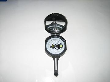 地质罗盘上有一个指针,用它指明磁子午线的方向,可以粗略确定目标相对于磁子午线的方位角,并利用水准器装置测其垂直角(俯角或仰角)以确定被测物体所处的位置。