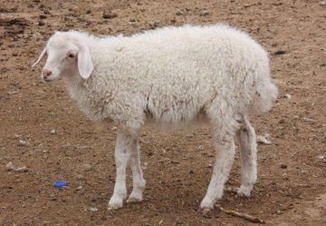 宁夏滩羊(又名盐池滩羊),属短脂尾羊,是由蒙古羊在当地特定的自然生态条件影响下,受到风土驯化和经产区劳动人员长期精心选育形成的粗毛型长脂尾裘肉兼用型绵羊品种。但其与蒙古羊有着本质的区别,蒙古羊的羔羊不具备二毛裘皮性状。滩羊体躯毛色纯白,光泽悦目,多数头部有褐、黑、黄色斑块。体格中等,背腰平直,胸较深,体质结实,鼻梁稍隆起,尾根部宽大,尾尖细圆,呈长三角形,下垂过飞节[4]。宁夏滩羊品种独特,每只母羊一年一胎,每胎仅产一羔的稀少数量[2]。 形态特征
