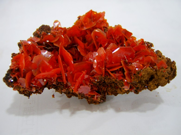 钼[mù]铅矿是提取钼的比较重要的来源,也是常见的钼矿物。它是一种铅钼酸盐矿物,产于铅和钼的氧化带中。钼铅矿一般结晶成为带有斜面的方形薄板,具有松脂光泽或金刚光泽,颜色为黄到橙红色或褐色。发红颜色是由于其中含有钨的成分。钼铅矿的橘红色特别艳丽夺目,这种晶体在晶型和组合形态方面不是强项,但强劲火烈的色彩弥补了形态的不足。色彩(包括光泽)是钼铅矿的灵魂。 基本资料