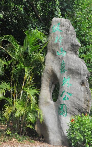 站在山脚,放眼望去,满山的绿树苍翠欲滴,树木间是隐约可见的石径。这条登山的小道是1999年澳门回归的时候,珠海市政府专门修建的,正好是1999级台阶,山顶上还有百子回归纪念碑,用来纪念澳门回归。