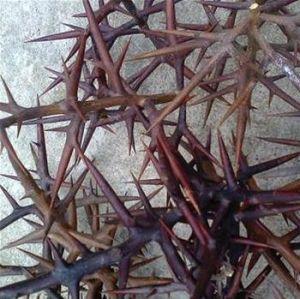 Gleditsia sinensis Lam.的干燥棘刺,主刺长圆锥形,长3~15cm或更长,直径0.3~1cm;分枝刺长1〜6cm,刺端锐尖。表面紫棕色或棕褐色。体轻,质坚硬,不易折断。