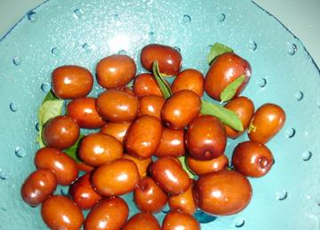 红枣是我国民间传统的药物之一,据明代李时珍的《本草纲目》记载:“干枣润心肺、止咳、补五脏、治虚损,除肠胃癖气。”“大枣味甘无毒、主心邪气、安中养脾、平胃气、通九窍,助十二经。”果实为缓和强壮剂,常用为滋药,治泻痢、调营工、疗寒热、治阳痿[wěi]、贫血、脾虚泄泻、心悸、失眠、盗汗、血小板减少性紫癜等症;树皮性强无毒,收敛性强,止血、祛湿,能治腹泻,刀伤止血,气管炎、肠炎、痢疾、崩漏等症;外用治外伤出血。可根治月经不调,红崩、白带等症。酸枣仁可做兴奋剂,炒黄后又可做镇静剂,有安神、养心、敛汗之功能。 三大特点