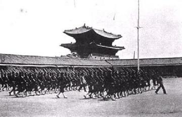 大韩帝国军是指大韩帝国的主要武装力量,是一支近代化的军队。大韩帝国军肇始于甲午更张时期朝鲜王朝设立的新式军队,在1898年前曾接受美国、日本、俄国等国教官的训练,1898年以后由大韩帝国自主训练并进行改革。大韩帝国皇帝高宗李熙于1899年设元帅府,将军队的最高统帅权掌握在自己手中。此后增加军费,不断扩军,加强近代化建设,并从1903年实行征兵制。大韩帝国军只有陆军,由作为中央军的亲卫队、侍卫队和作为地方军的镇卫队组成,到日俄战争前夕兵力约28000人。日俄战争后逐渐为日本控制,1907年被日本人解散。 发展史