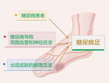 糖尿病足(diabetic foot,DF)[2]是糖尿病患者因糖尿病所致的下肢远端神经病变和/或不同程度的血管病变导致的足踝部皮肤溃疡和/或深层组织破坏,伴或不伴感染。糖尿病足是导致糖尿病患者致残、致死的严重慢性并发症之一。[3] 糖尿病足的概念是由Oakley于1956年首先提出,1972年Catterall将其定义为因神经病变而失去感觉和因缺血而失去活力,合并感染的足。[5]该病依据溃疡的病因,可分为神经性溃疡、 神经-缺血性溃疡、缺血性溃疡;依据坏疽的性质,可分为湿性坏疽、干性坏疽、混合性坏疽。[3]该病的发病机制十分复杂,涉及遗传因素、环境因素、高血糖、糖基化终末产物(AGEs)等多种致病因子。[4]糖尿病患者足部溃疡的患病率为4%~10%。中国50岁以上糖尿病患者下肢动脉病变的比例为21.2%。中国糖尿病患者1年内新发溃疡发生率为8.1%,糖尿病足溃疡患者1年内再发溃疡发生率为31.6%。[3] 糖尿病足的神经病变表现为皮肤针刺样或者烧灼样疼痛等感觉异常、肢端麻木、感觉减退等;下肢缺血表现为间歇性跛行、静息痛、缺血部位出现溃疡或坏疽等。神经病变检查有10g尼龙丝检查法、震动觉、神经传导速度等,血管病变检查有体检、