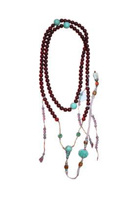 文物。朝珠,是清代官服中特有的饰物,由佛珠衍生而来,共108颗,清代的朝珠多以