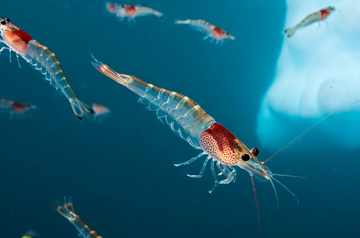 磷虾的身体很透明,它们没有鳃腔。鳃裸露在外,直接浸浴在水中。磷虾腹部共有六节,它末端有一个尾节。磷虾有八对胸肢,那些胸肢都是双肢型,非常适于游泳。磷虾胸肢上没有特化的颚足,它们的眼柄腹面及腹部的附肢上,基部都有一些球状发光器,可以发出磷光,因此它被称为磷虾。[4]