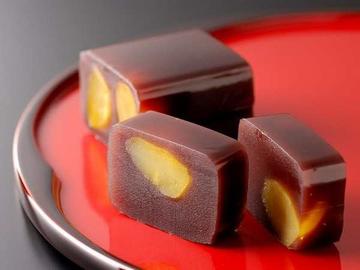 栗羊羹,中国传统食品,天津特产。[1][2]栗羊羹主要原料有红小豆、栗子、琼脂等。[3] 栗羊羹源于中国古代的羊羹。[2][4]南北朝时期,南朝宋有个名叫毛修之的人,他投降北魏以后,曾经向一个高官(尚书)进献过羊羹。[4]唐朝时,最初的羊羹是加入羊肉煮成的一种羹汤,那时日本与唐朝来往甚多,很多中国文化都通过遣唐使传到了日本。[5]日本镰仓时代,羊羹随着禅宗进入日本。[4]但日本僧侣不吃肉食,便以红豆、葛粉和面粉为原材料做成一种甜点,形状酷似羊肝,称之为羊肝羹。因在日语中“肝”与“羹”发音相似,羊羹的名字便保留了下来。[5]日本天正17年(1589年),和歌山的冈本善行右边卫将原有的羊羹作改良,在馅料中加入寒天制成炼羊羹,并用竹竿将羊羹的形状巩固成方形。[4]经过多年的演变、改良,日本人制作的羊羹已发展成四种类型,即炼羊羹、蒸羊羹、水羊羹、特殊羊羹。[2]20世纪30年代,天津人在羊羹的基础上加以改进,以板栗和红豆为原料制成了栗羊羹。[1][2] 栗羊羹的制作方法简单,先将红豆洗净,再将栗子剥去外壳内皮,然后捣碎并研磨成栗泥。之后将洗净后的红豆煮成豆沙,再放入栗泥。待形成粘粥状后,立即投入适量琼脂,并搅拌使之成为胶状液体。最后用勺趁热将熬制好的胶状液体逐一灌在衬有锡纸或拟纸膜的铝质方容器中进行自然冷却,然后抽出,一块栗羊羹即制成。[2][3] 历史沿革