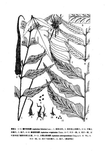 叶簇生;叶柄长14-24厘米,基部粗2.5-3.5毫米,绿禾秆色或稍带灰褐色,上面有纵沟,基部密被与根状茎上同样的鳞片,向上疏被星状小鳞片;叶片椭圆披针形,长35-45厘米,基部以上宽9-12厘米,短尾头,一回羽状;羽片12-14对,基部的近对生,向上互生,斜展,有柄(长2-3毫米),各对羽片相距2.5-4厘米,彼此疏离,下部羽片不缩短,菱状阔披针形,略呈镰刀状,长8-10厘米,基部宽2-3厘米,渐尖头,基部楔形,极不对称,上侧平截,与叶轴近平行,有明显的耳状突起,下侧强度斜切,边缘有不整齐的粗钝据齿。叶脉羽状,两面均可见,小脉纤细,二回二叉,或羽片基部上侧1-2脉近羽状,极斜向上,不达叶边,下面略隆起,通常每组小脉的上侧一脉下部与主脉平行。叶厚纸质,干后棕绿色或灰绿色,下面疏被褐棕色的星状小鳞片;叶轴绿禾秆色,疏被深褐色变形虫形小鳞片,上面有阔纵沟,顶部两侧有狭翅。孢子囊群狭线形,长1-1.5 (-2) 厘米,极斜向上,与主脉近平行,稍弯弓,生于上侧一脉,在基部的脉间或上侧两脉均生有孢子囊群,呈V字形,每羽片有6-8对,靠近主脉,不达叶边;囊群盖狭线形,淡棕色,后变褐色,膜质,全缘,开向主脉,但若基部上侧两小脉均能育时,则其下侧的囊群盖开向叶边。 生长环境