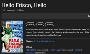 这首歌是1943年电影Hello,Frisco,Hello的主题曲。由Alice Faye演唱。这首歌成名于1944电影FourJillsina
